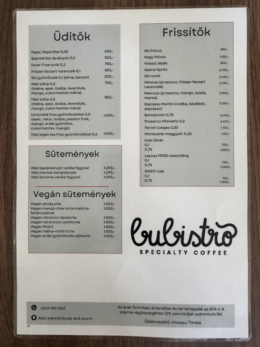 For an invigorating start to your day or a relaxing afternoon retreat, make sure to visit Bubistro at Gyulay Jeno u. 11, 8622 Szantod, Hungary. Feel free to call ahead at +36 20 553 0562 to check on daily specials or reserve a table on the terrace. Your perfect cup of coffee awaits!